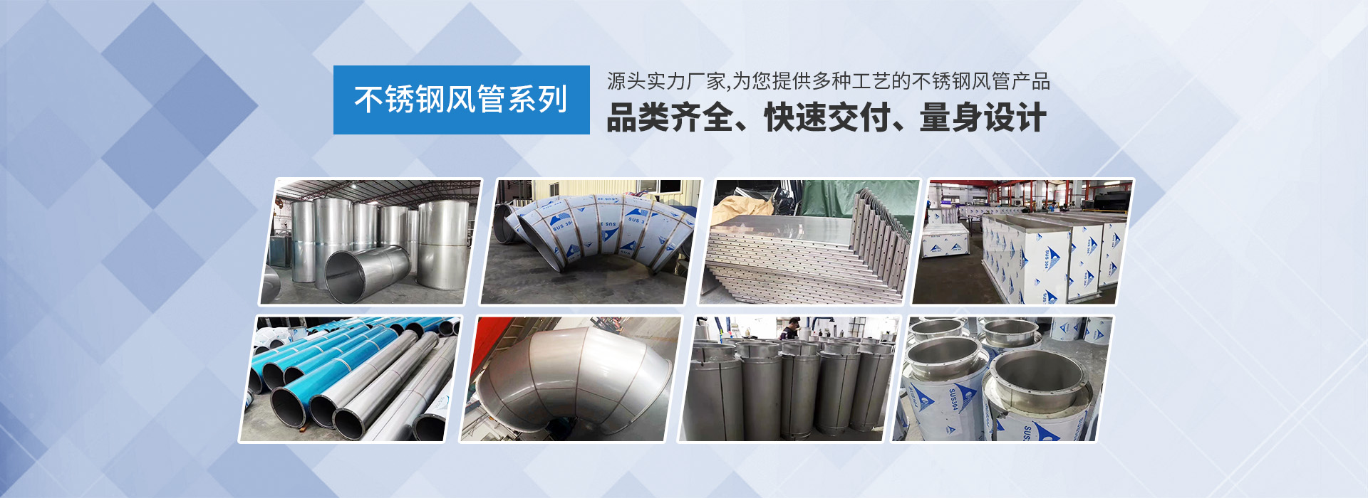 • 生產不銹鋼風管,焊接風管,碳鋼風管,螺旋風管,橢圓螺旋風管,鍍鋅風管,品類齊全。